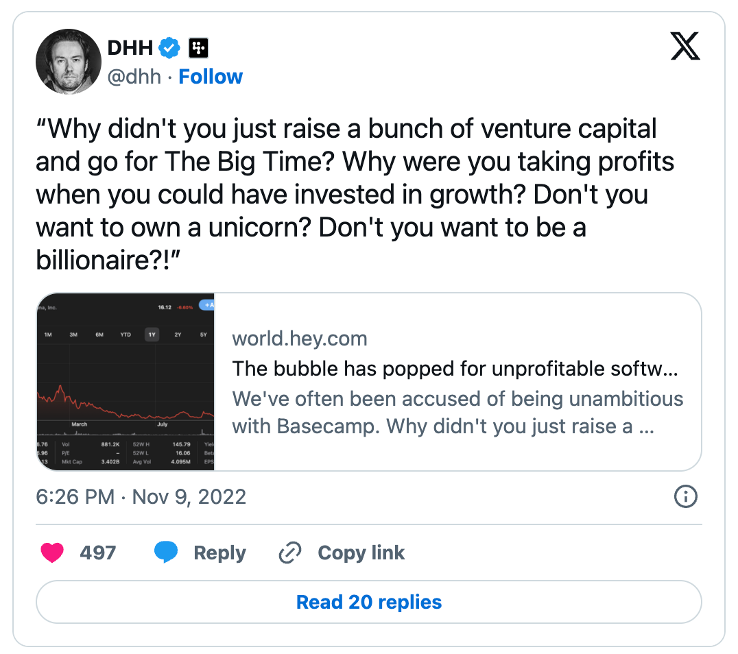 In addition DHH started several businesses including famous Basecamp, Hey and an investing firm called 37signals.