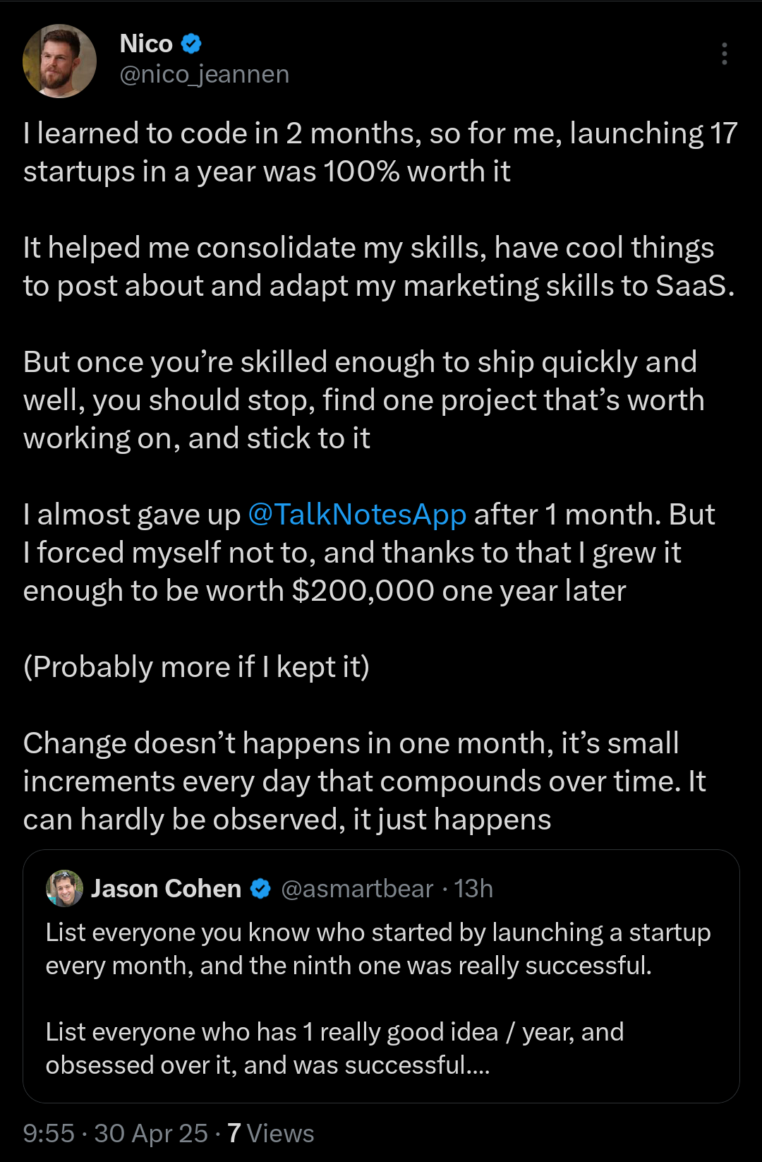 Cherry-pick useful frameworks and insights from others, but be yourself. Stop building weak ideas halfway and pretending it’s progress.