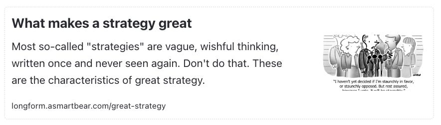 Every title, every meeting and every PPT with the word strategy in it, elevate its purpose straight higher than without.