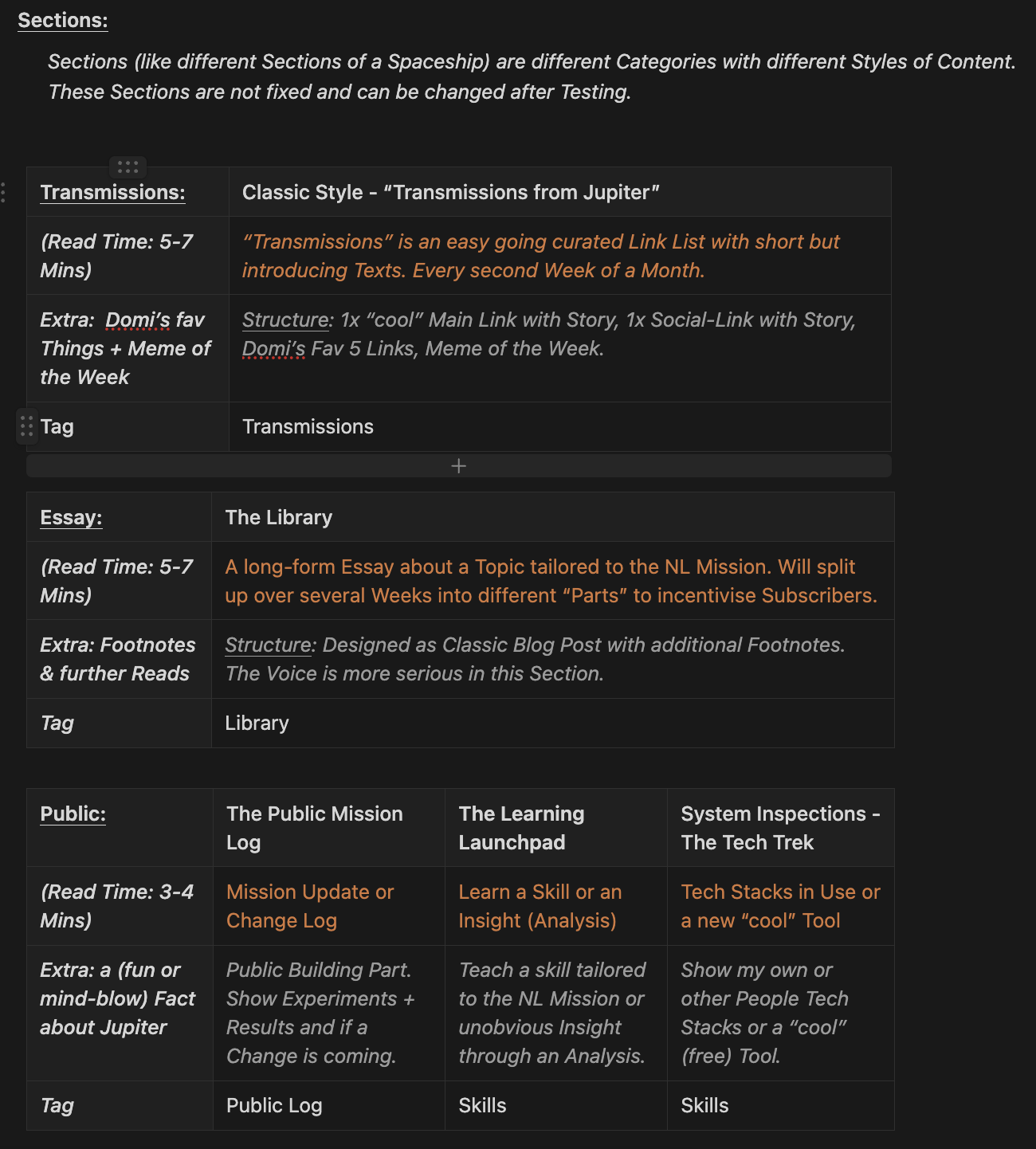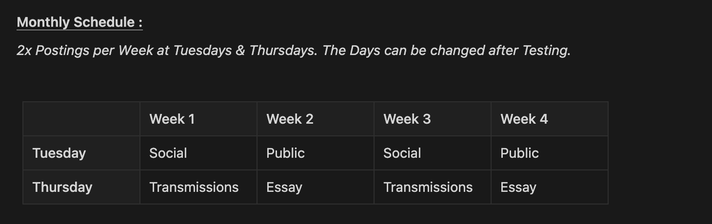 Here is my Notion-Page about the posting schedule and which sections I planed in the near future.