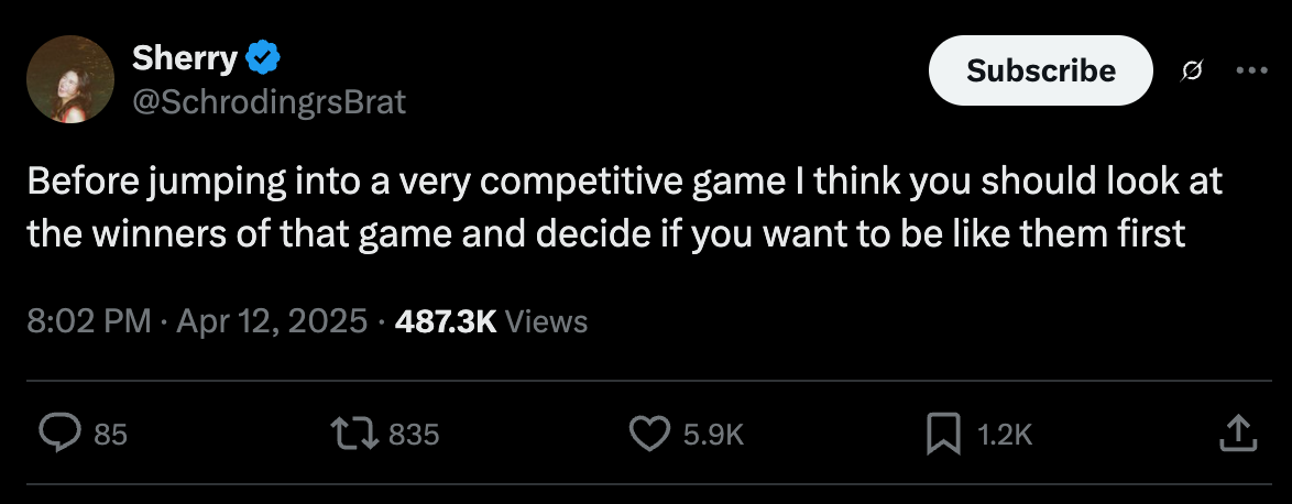 Is that your vibe? I thought I wanted it, until I realized I’d rather have weekends than a rocket company.
