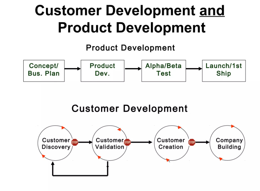 Customer creation: When you go to alpha/beta testing the product, follow up with the people you talked before and ask matching potential customers to use your product. Be with them when they use it. Learn and gather feedback and involve the customers.